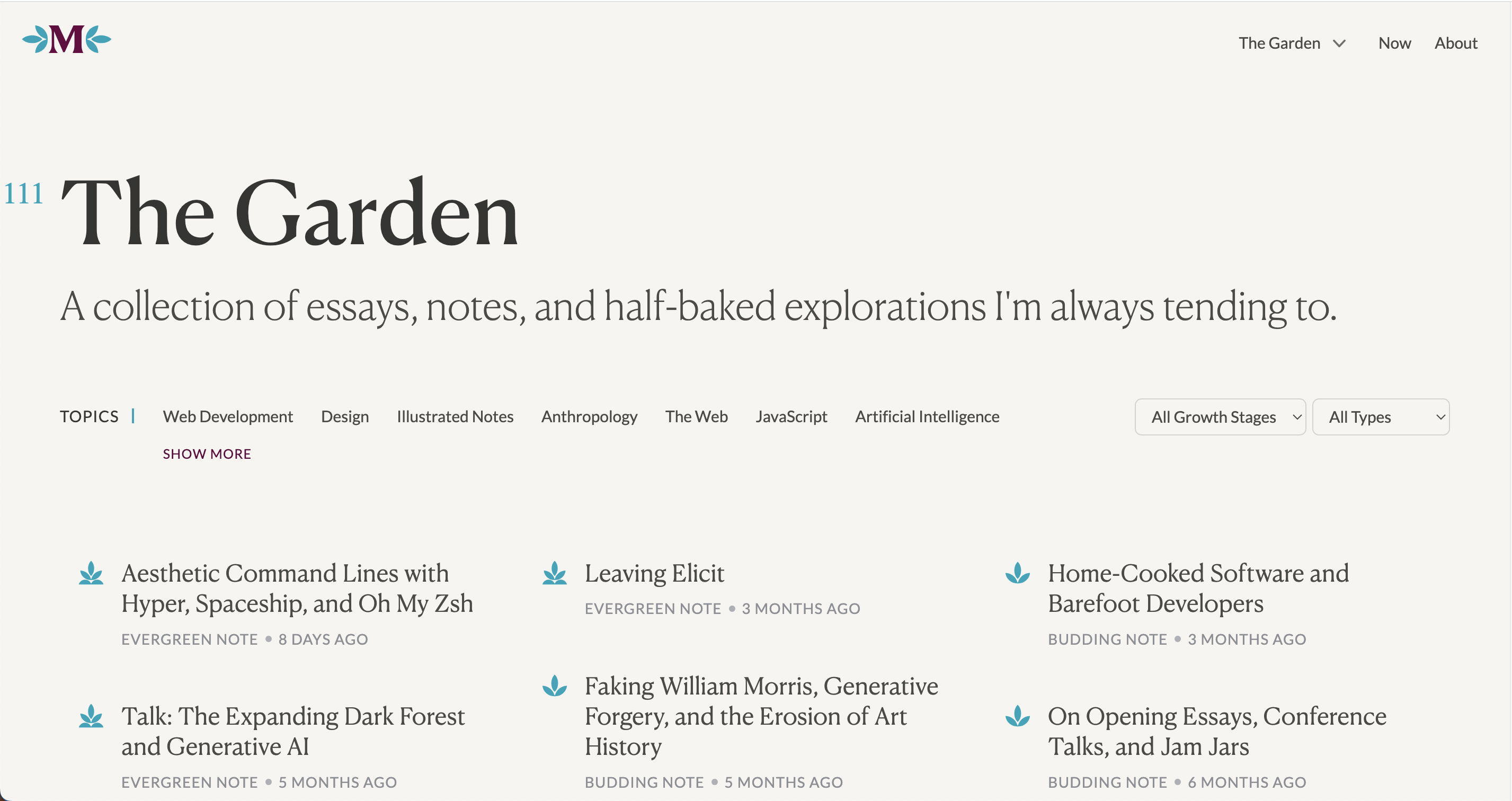 From the initial curiosity of website designs like Poolsuite, I went on to research other related information about it and found an array of valuable resources about the web. One of them is the term digital gardening, which is a philosophy of approaching websites. In this philosophy, authors usually upload unfinished text fragments, notes and ideas, as opposed to a usual blogpost or newsletter, where it is published as a whole after many revisions. The goal is to develop text projects like essays, and each idea can be grown, using gardening metaphors to envision how it worked. These are examples of digital gardening on the realm of content publishing by Maggie Appleton , and Mental Nodes.