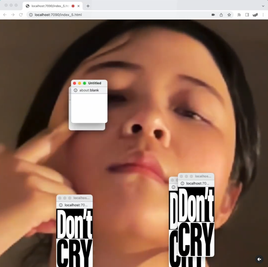 Midway through trying to replicate Song's outcome, I began to reflect on what truly intrigued me about the work. Its interactivity resonated with me, and in my view, the concept is straightforward—gesture and visuals. I think the small browser windows that opened were what truly defined its aesthetic, evoking a sense of nostalgia reminiscent of 90s internet visuals.