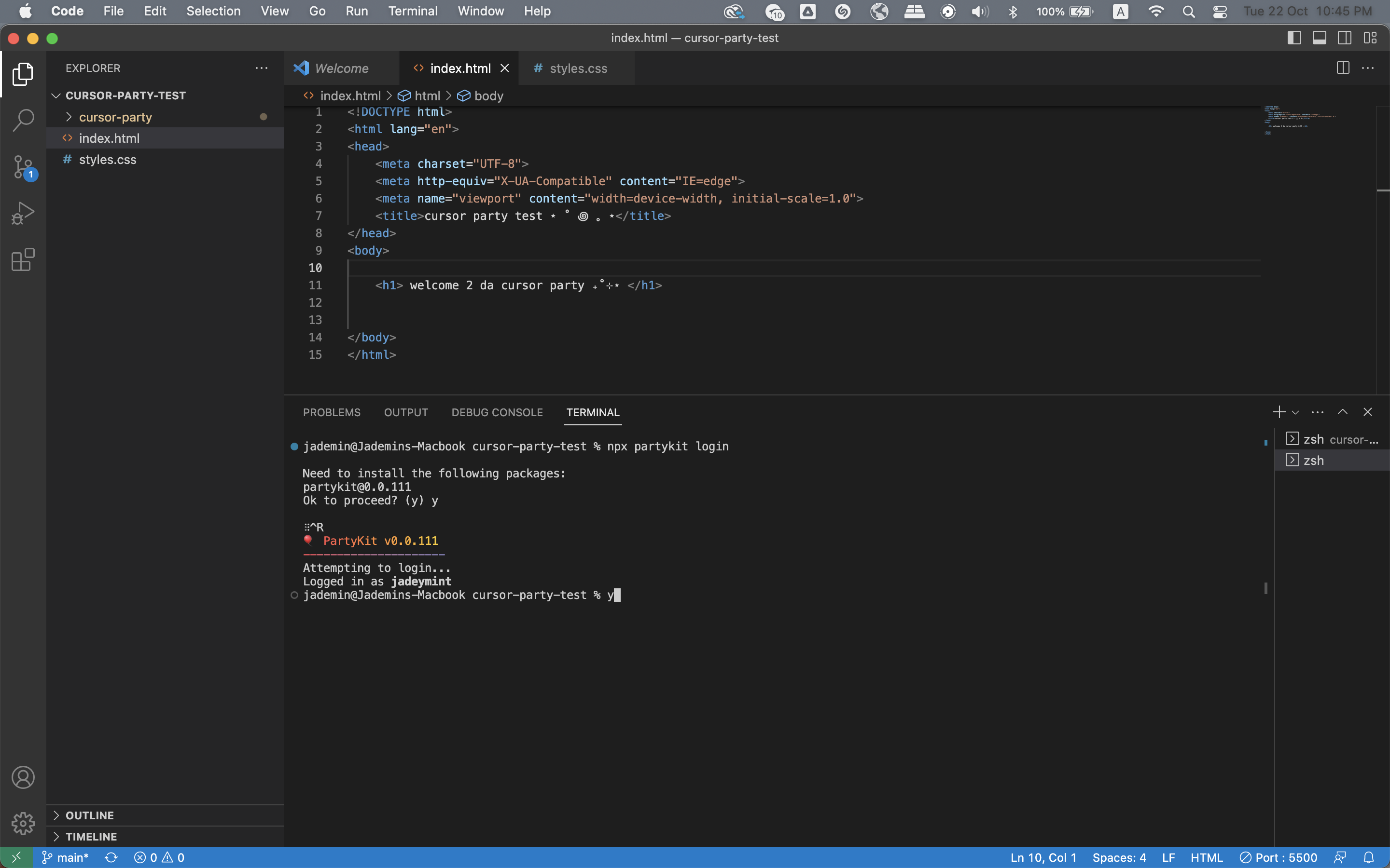 Thereafter I specified websites that could interact with the multiplayer cursor feature and logged into partykit and deployed the project.