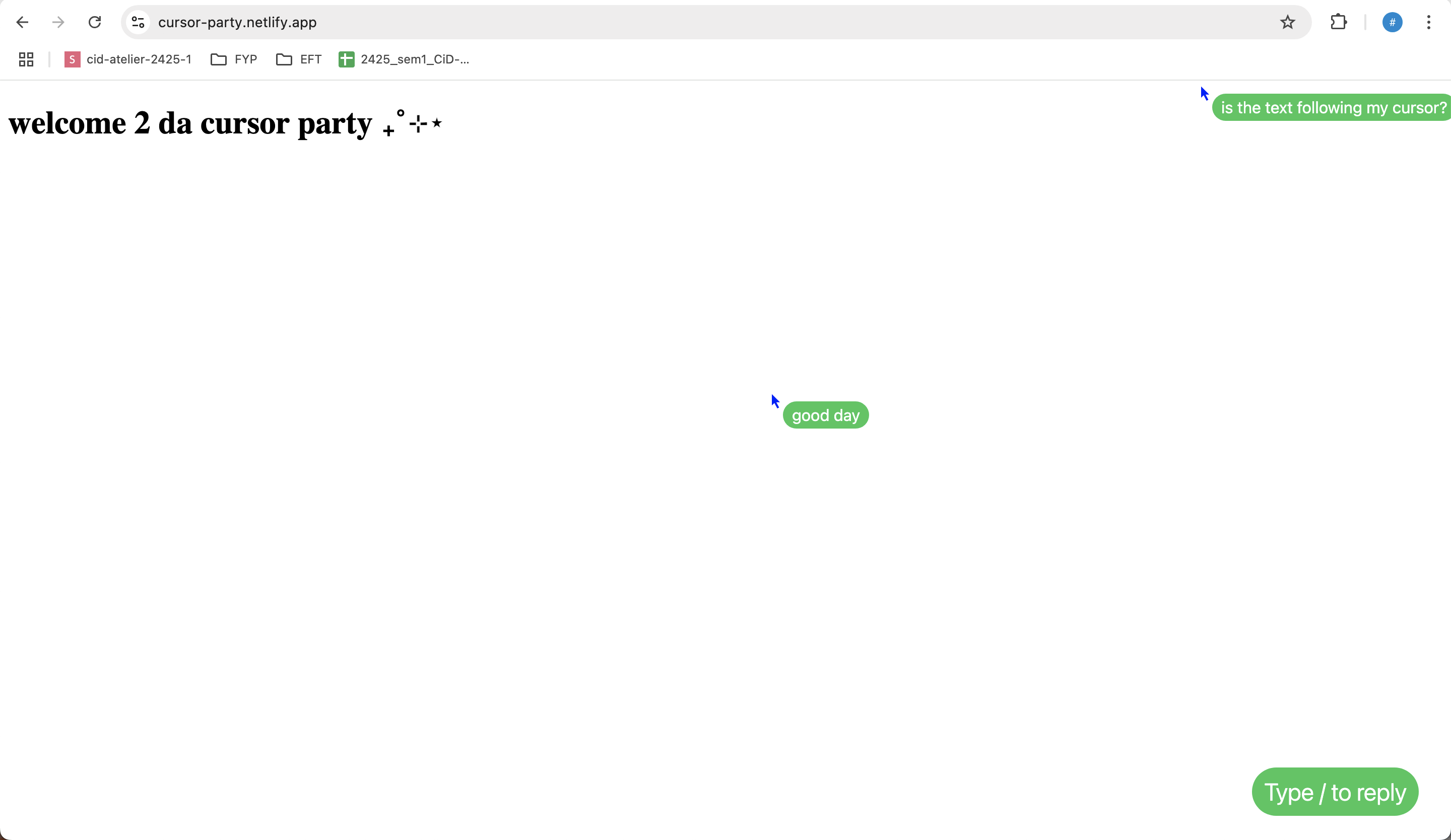 When I invited my classmates to explore my website and interact with the cursor chat function, I feel that simplicity could have so much humanity.