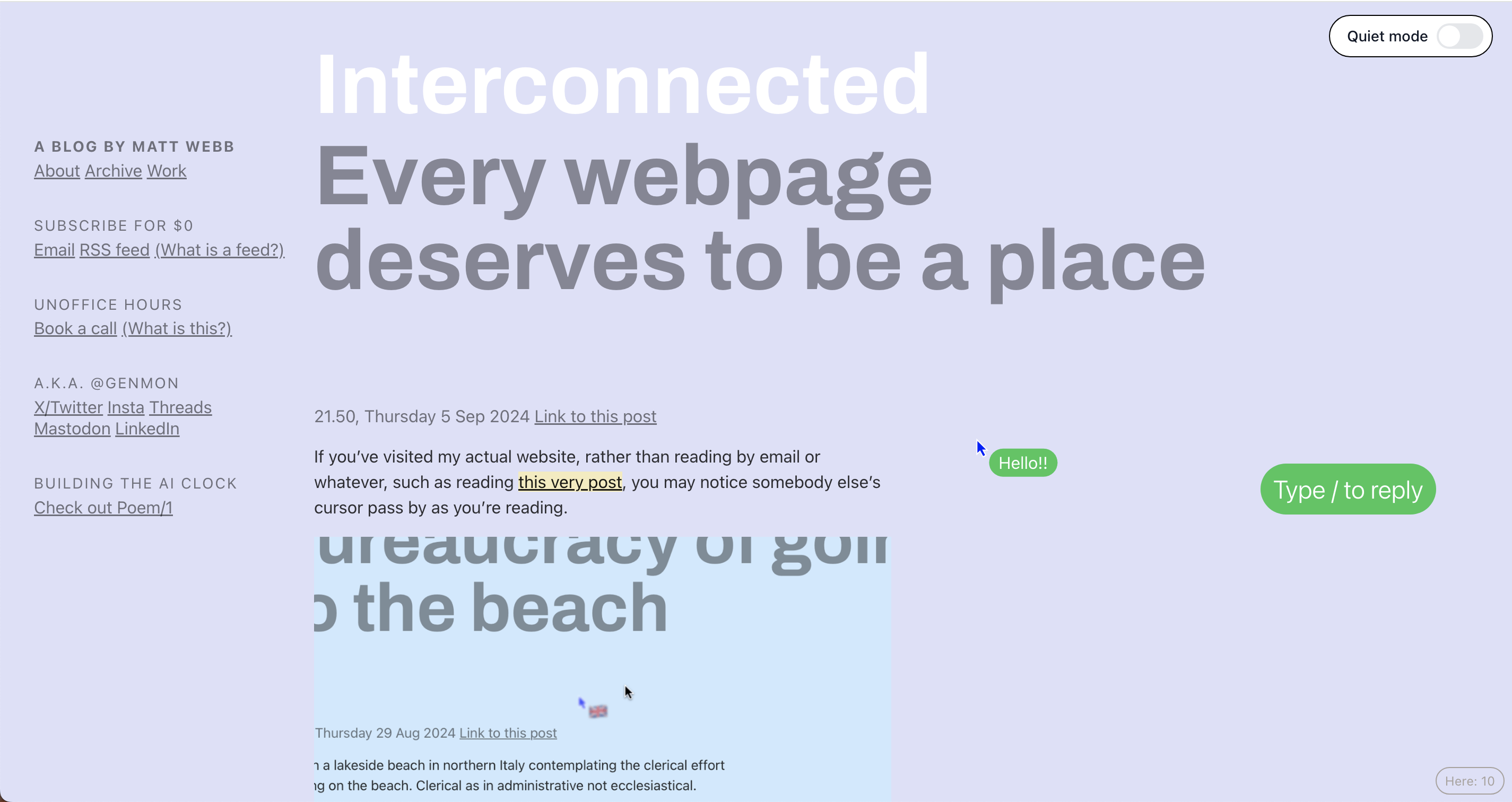 where Matt Webb introduced a library which he created to enable a cursor chat function for websites. I've previously shared about how much I resonate