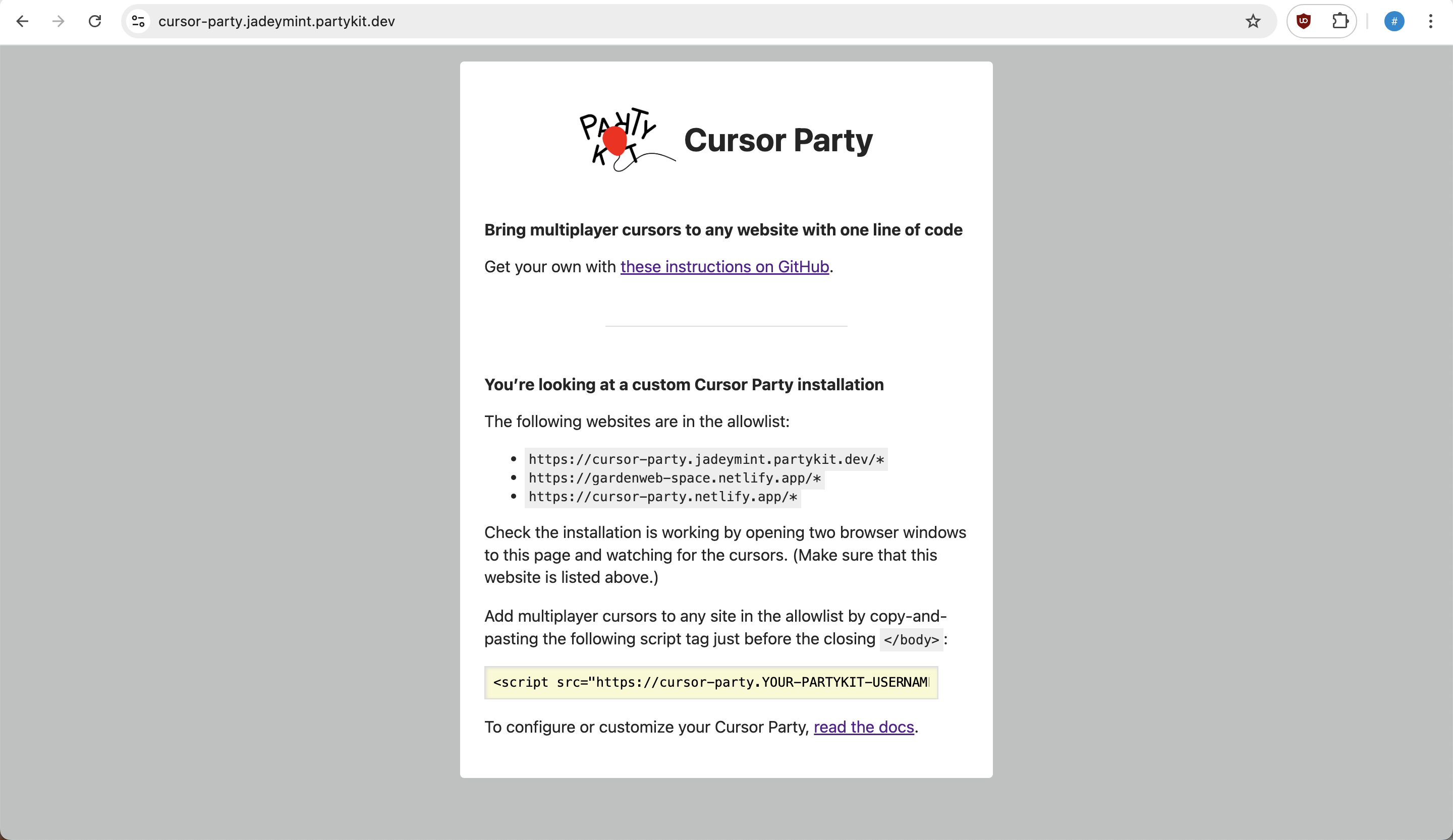 For cursor party, all I needed to do was to spend a little more time re-installing party kit into garden web website, and ensure that its showing in the partykit dev.