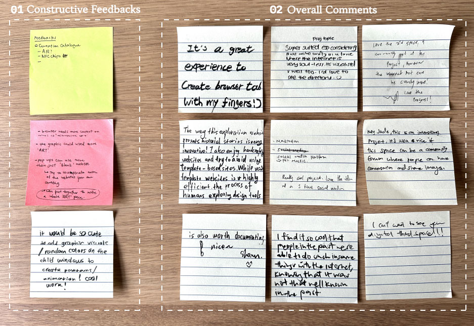 by artists like JODI or Olia Lialina to help clarify the connection. There were also comments on how the browser pop-ups could be more interactive or engaging, perhaps through the use of simple colors or visuals.