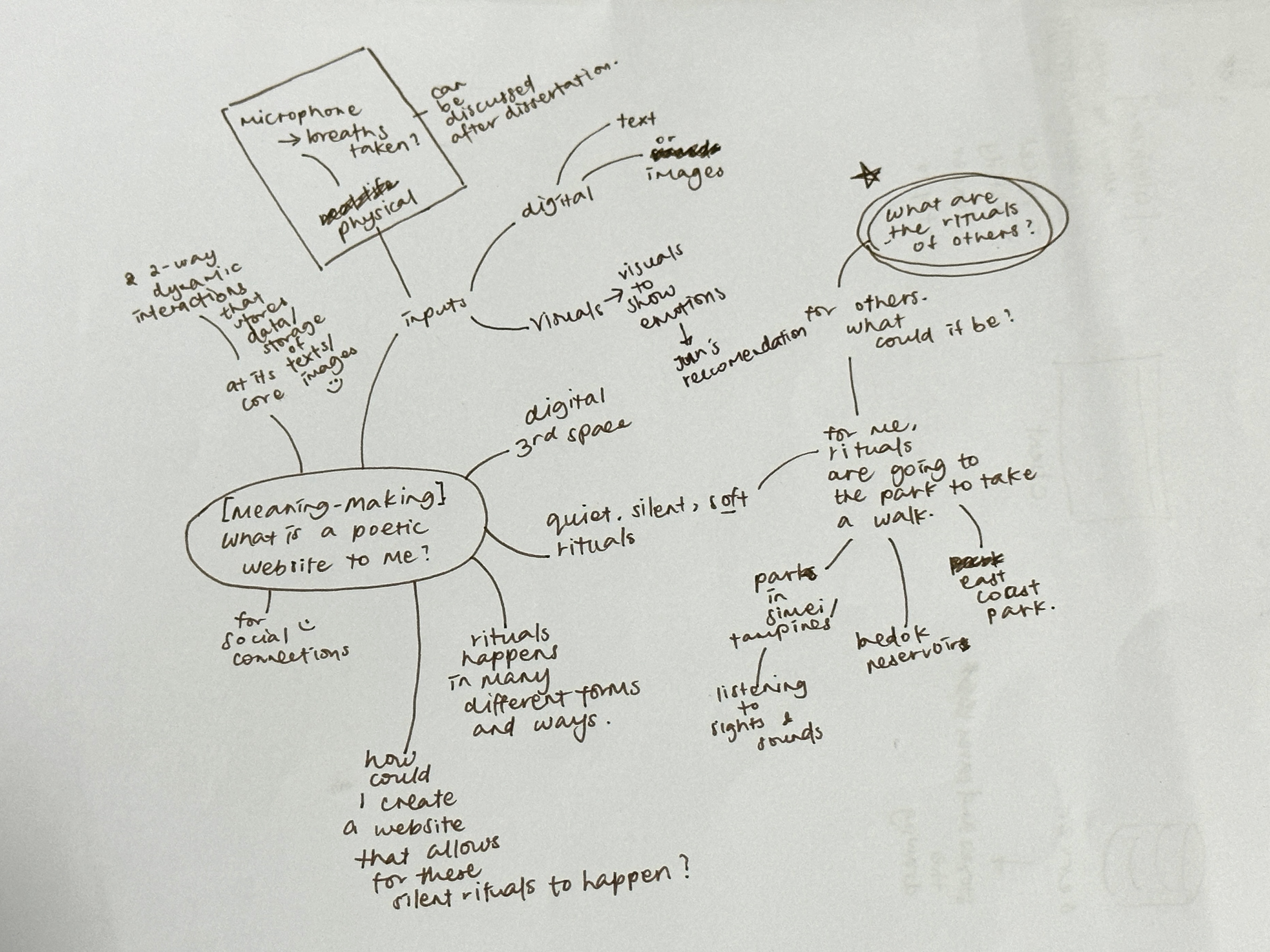 Ideating this website idea was rather intuitive. I reflected on calming spaces in real life which I could use as a metaphor